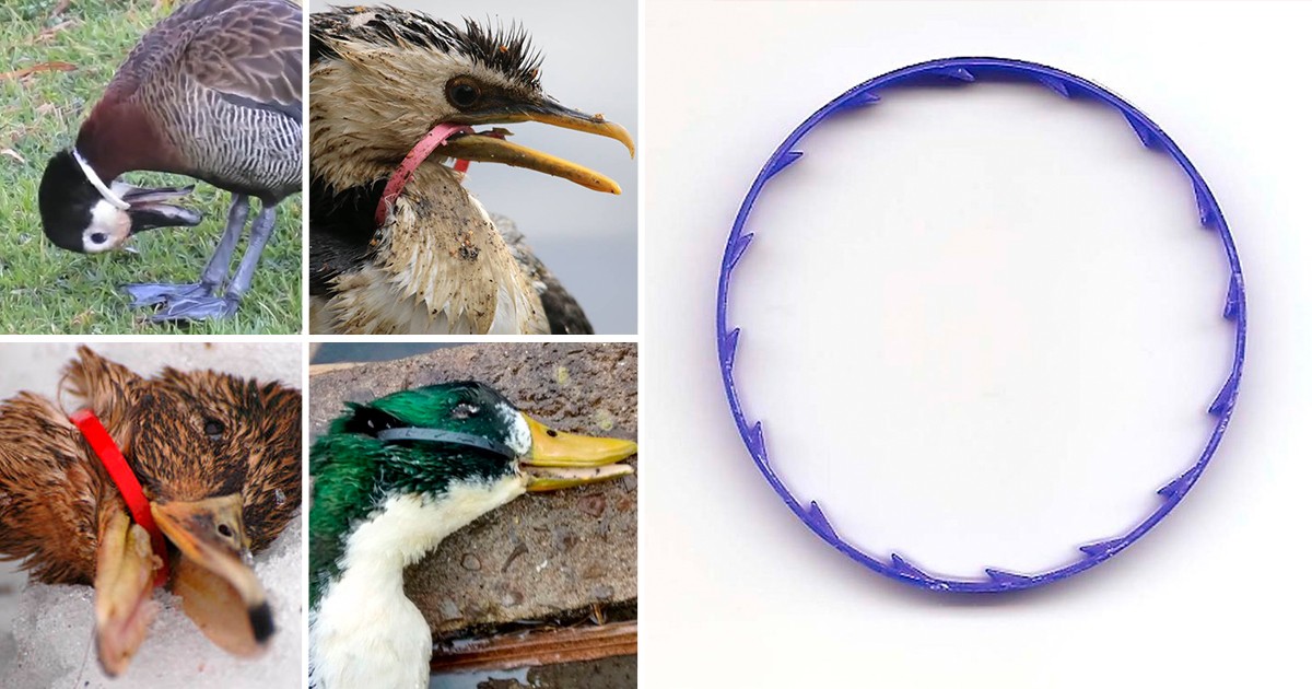O descarte incorreto de lacres e argolas de garrafa pode ser extremamente perigoso para os animais e aves marinhas.